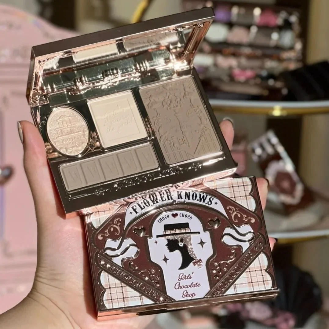 Flower Knows Chocolate Wonder-Shop Highlighter Contour Powder Face Palette For Women Bronzer Illuminator original highend makeup