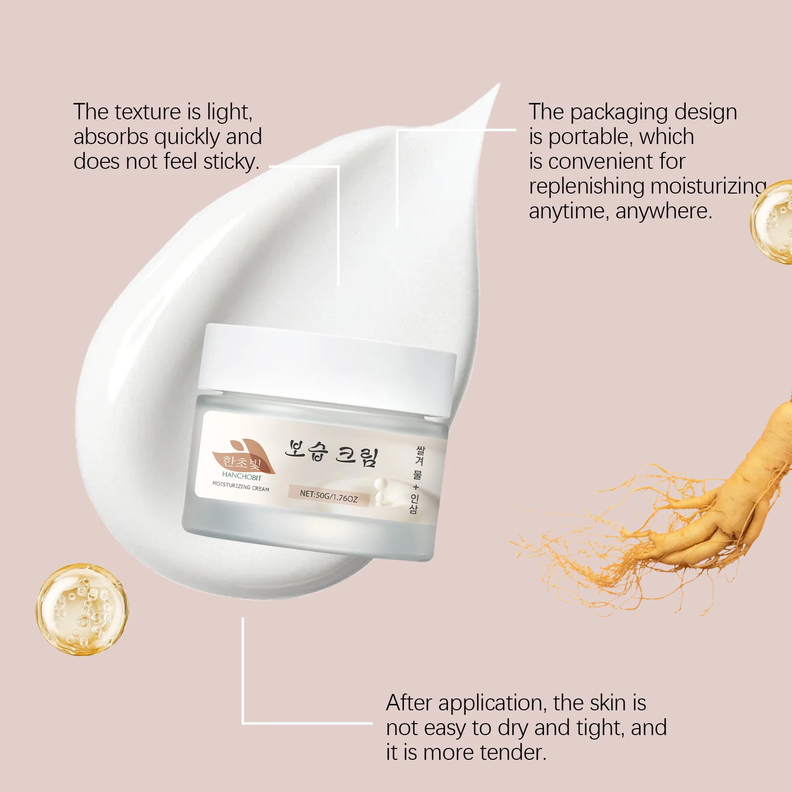 Lightweight and deeply hydrating Korean-style moisturizing cream enriched with rice bran water and ginseng extract.